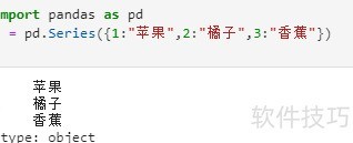 8、 创建一个Pandas序列,用数字索引对应水果名称,如1对应苹果,2对应橘子,3对应香蕉。
