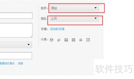 6、 填写版权与隐私信息,若需上传盈利,务必选择原创和公开选项。