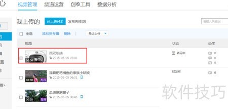 9、 返回首页,点击上传进入视频管理,即可查看上传状态。
