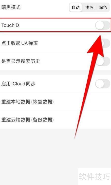 4、 当TouchID后的圆点变灰时,说明Focus浏览器已成功关闭指纹识别功能。