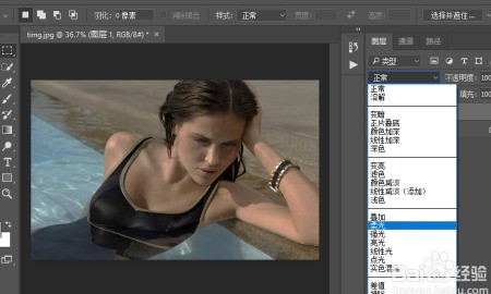 2、 复制背景图层,将图层1的混合模式设置为柔光。