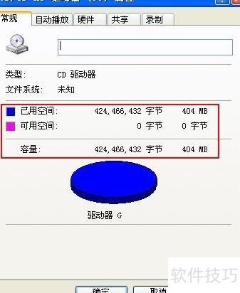 1、 放入光盘至光驱,查看属性显示容量为404M。