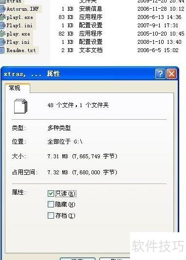 2、 双击打开光盘后全选文件查看属性,发现实际仅有7.31M数据,而近400M的内容被隐藏,直接复制仅能获取这7.31M的可见部分。