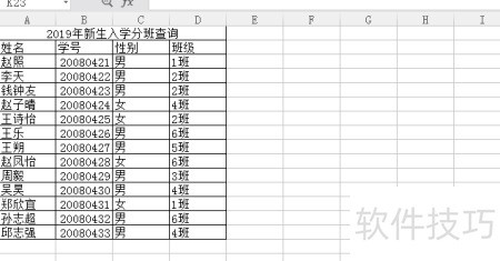 7、 查询条件的设置可根据实际情况灵活调整。若仅为小范围查询分班情况,且无重名现象,仅使用姓名作为条件即可;若涉及较大范围的学生查询,为避免重名带来的混淆,建议将姓名与学号组合起来作为双重查询条件,以提高准确性和效率。
