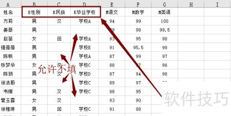 8、 表格数据区域需从左上角开始顶格填写,不得留空行或空列。姓名列为必填项,列名不可更改,学生姓名不能为空。