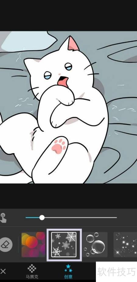 13、 点击雪花贴纸,涂抹到所需位置即可。