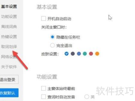 3、 进入设置页面,选择左侧工具栏的取词划译功能。