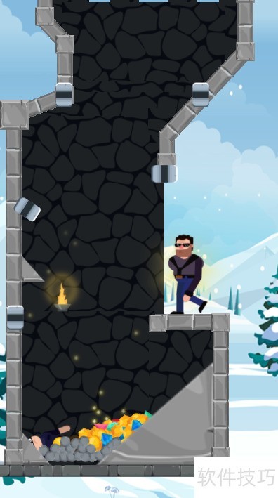 6、 黑衣男子找到宝藏后,屏幕弹出星星画面,顺利通关。