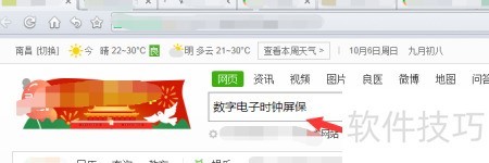 1、 在浏览器中输入数字电子时钟屏保并点击搜索即可。