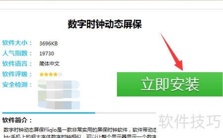 10、 从浏览器网页下载数字电子时钟屏保程序。