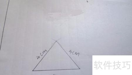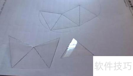 3、 将硬塑料片覆盖在已画好的三角形上,用笔描摹出四个相同形状的三角形。