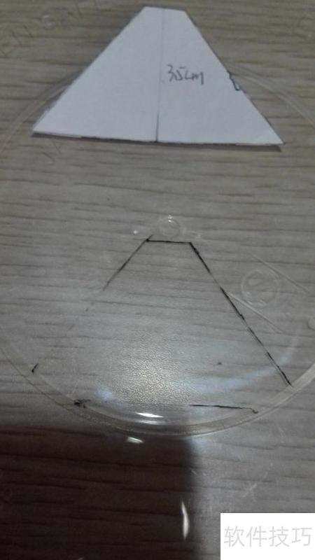 2、 把剪好的梯形贴在饭盒盖上,沿着边缘描出轮廓。