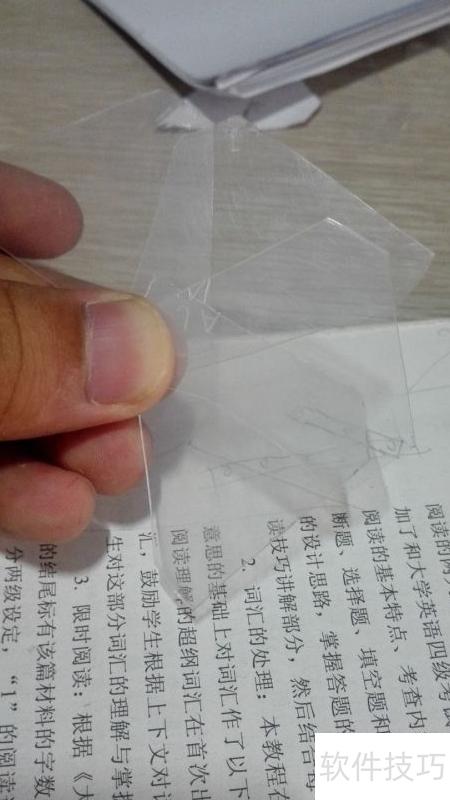 4、 将四片塑料用胶带按图示粘好,即可制成投影片。