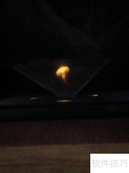 5、 将制作完成的投影片小口对准全息视频中心,从侧方即可清晰看到立体影像。