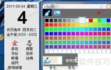 3、 第三步:点击右上角的外观设置按钮,3所示,可自定义调整HoHoo桌面日历的颜色、透明度和亮度等视觉效果。
