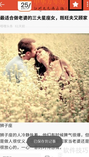 3、 设置完成后即可开始阅读,遇到有用信息,点击右上角的五角星按钮,内容将自动收藏至中华万年历记事中。