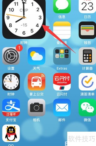 在苹果手机桌面上,默认显示普通时钟图标,若想添加放大的时钟小组件,可通过长按桌面进入编辑模式,点击上方加号添加时钟部件并选择大尺寸即可。