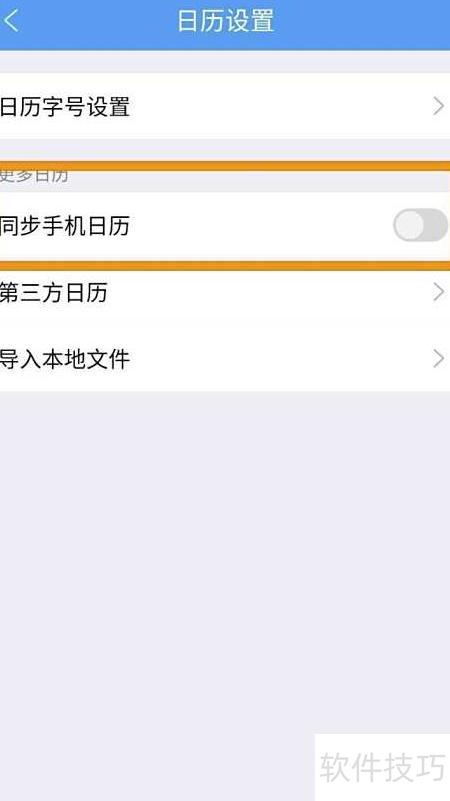 3、 进入日历设置,点击同步手机日历右侧开关即可开启。
