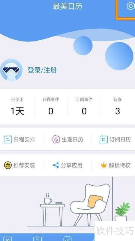 1、 打开最美日历应用,进入我的页面,点击设置图标即可。