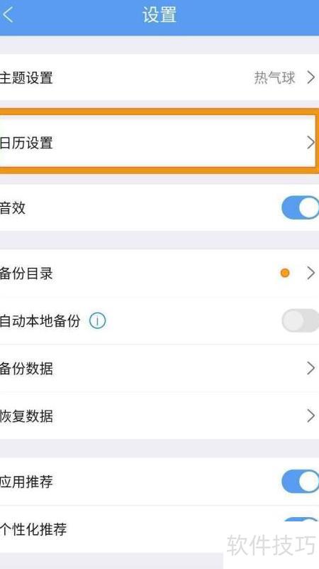 2、 进入下一页后,点击选择日历设置功能选项。