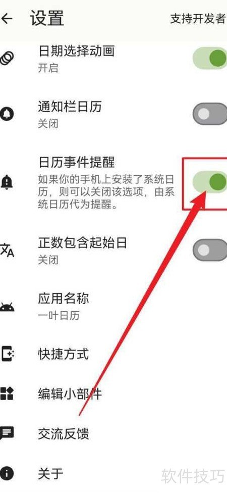 3、 进入设置,打开日历事件提醒右侧的开关即可启用功能。