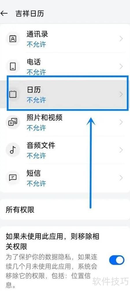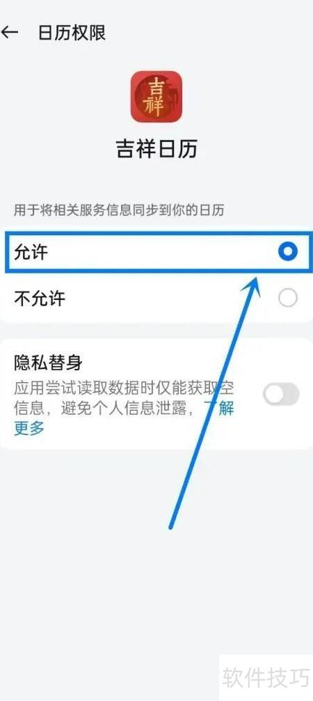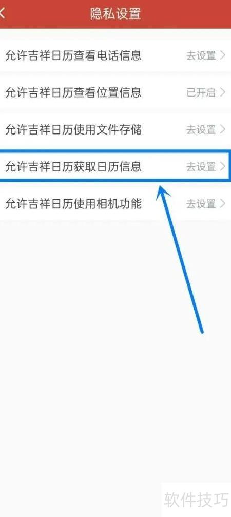 2、 进入隐私设置,开启允许吉祥日历访问日历信息的权限。