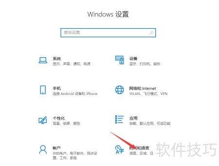 9、 此时,在弹出的窗口中选择时间和语言设置。