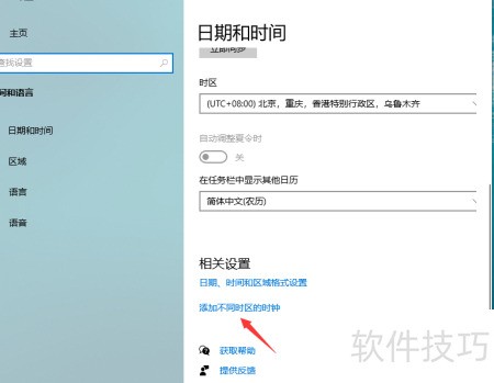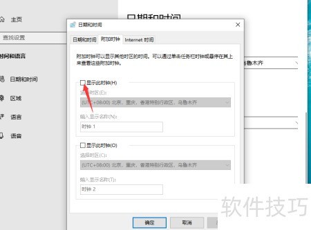 4、 点击箭头指示处,添加其他时区的时钟。