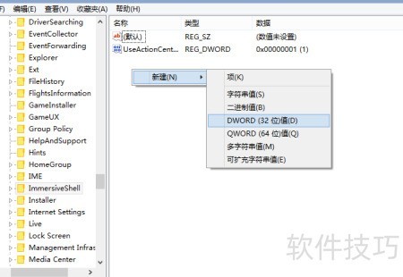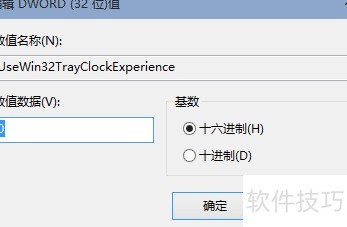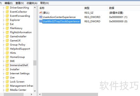 5、 将其重新命名为UseWin32TrayClockExperience。