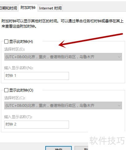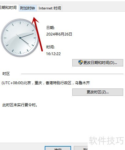 2、 点击附加时钟标签,操作所示。