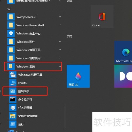 2、 出现所示界面,选择Windows系统中的控制面板选项