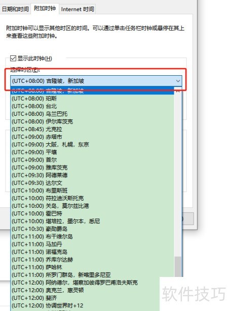 6、 勾选后,时区选择变为可操作的下拉菜单,点击即可选取所需时区,具体所示。