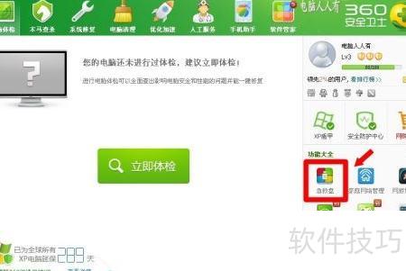 1、 打开360安全卫士,进入电脑体验,选择功能大全中的急救盘。