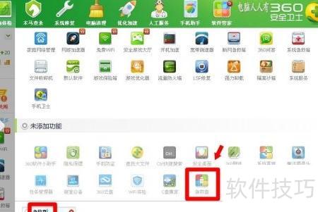 3、 在未添加功能里查找急救盘,或于左下角搜索框输入急救盘并回车,即可将其添加至已启用功能(需保持网络连接以下载该功能)。