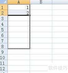 3、 在A列依次输入1、2,选中后拖动填充柄向下复制。
