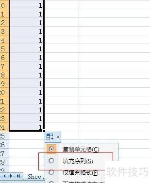 7、 点击后选择并填充序列