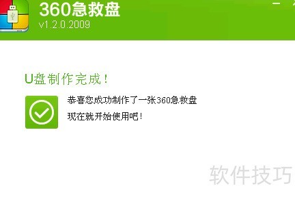 5、 当进度条达到100%时,急救盘即制作完成。随后可安全移除U盘,用于电脑急救。如不熟悉操作,建议观看相关教程以了解使用方法。