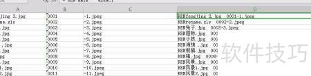 2、 打开rename.xls文件,在Excel中输入所需文字,利用排序功能进行整理,也可替换为自定义名称,具体操作可自行搜索。使用mid函数提取所需部分文件名,结合&符号进行拼接,注意最终结果需保留完整格式,包括扩展名.XXX。