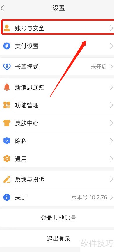 2、 点击进入账号与安全设置
