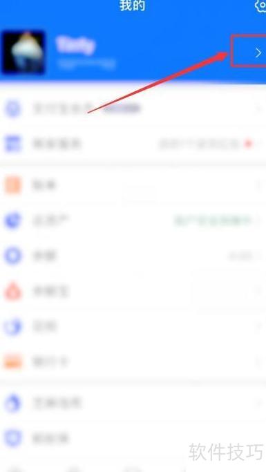 3、 打开支付宝个人主页,点击头像右边的箭头符号。