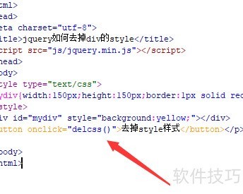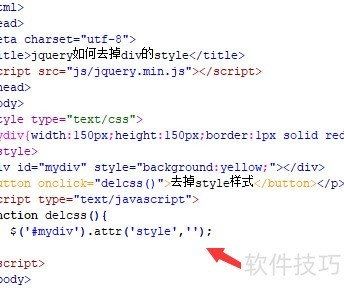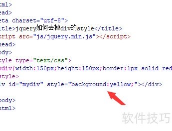 1、 创建一个名为test.html的文件,通过实例演示如何使用jQuery移除div元素的样式属性。