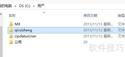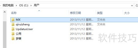 4、 注销当前账户并使用MX账号重新登录,系统将生成名为MX的用户文件夹,随后将原梦蝶文件夹重命名为qiruizheng。