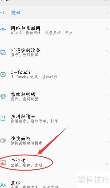 3、 进入设置后,点击个性化选项。