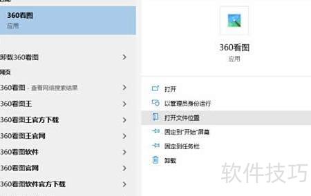 1、 点击系统左下角Windows图标,搜索框内输入360看图,选择并打开其文件所在位置。