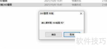 3、 在弹出窗口中点击确认以卸载360看图软件。