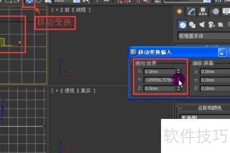 6、 右键点击平面图上方的移动变换工具,通过弹出对话框中的微调旋钮将其归零,便于后续模型制作。