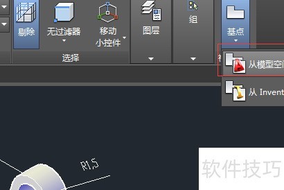 2、 点击右上角基点旁的倒三角,从中选取从模型空间即可。