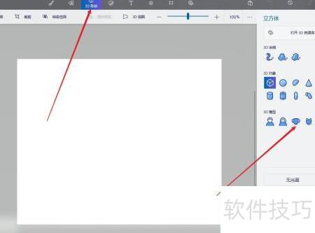 2、 在空白画布上点击顶部的3D形状图标,选择一个合适的3D模型。