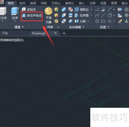 5、 获取文字轮廓后,进入常用菜单选择按住拖动功能,操作所示。