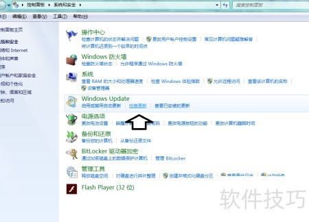 8、 打开设置,进入系统与安全,选择Windows更新,点击检查更新即可。